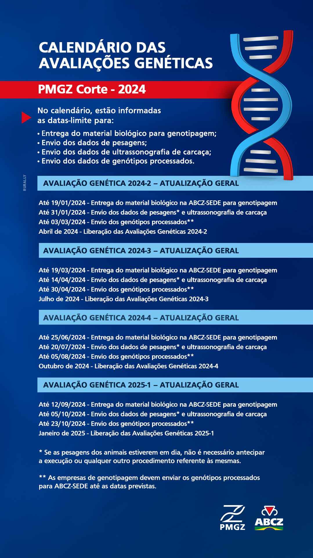 A partir de 2024, as avaliações do PMGZ Corte contam com uma novidade: todas as quatro avaliações divulgadas no decorrer do ano contarão com a atualização geral das informações, ou seja, terão a incorporação dos dados zootécnicos que envolvem genealogia, pesagens e ultrassonografia de carcaça, além dos dados de genotipagens dos animais. Até 2023, apenas duas das divulgações contavam com todas estas informações, enquanto as outras duas incluíam apenas os dados referentes à genotipagem.