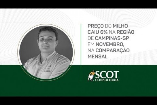 Preço do milho caiu 6% na região de Campinas-SP em novembro, na comparação mensal - TV Scot Consultoria